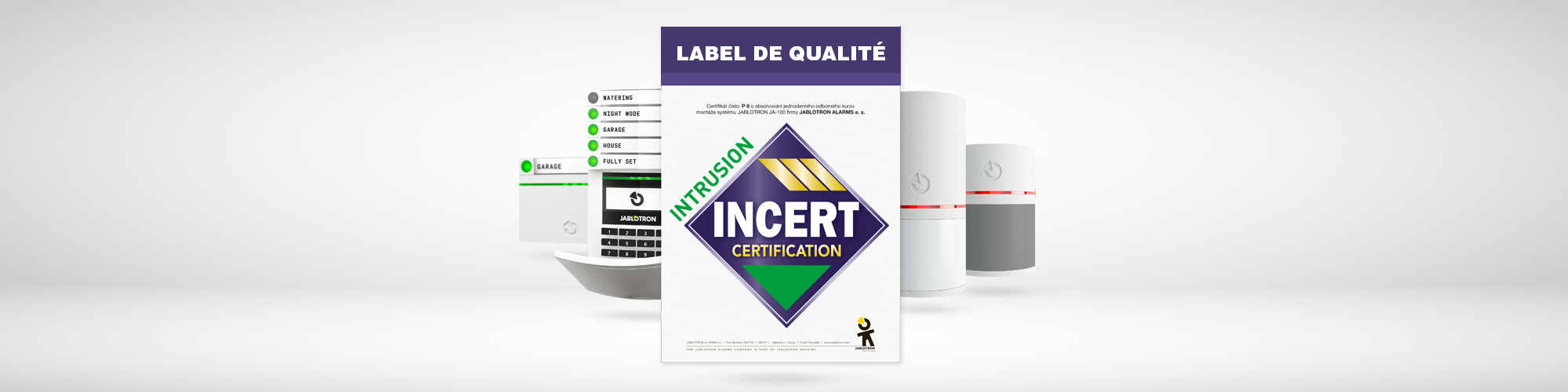 Jablotron ne travaille qu'avec des installateurs agréés par le ministère de l'Intérieur pour installer des systèmes d'alarme. De plus, Jablotron est une marque certifiée INCERT. Par conséquent, toutes les installations Jablotron peuvent être livrées avec le label de qualité INCERT si le client final le souhaitez. Ceci à condition que l'installation se fait par un installateur certifié INCERT.